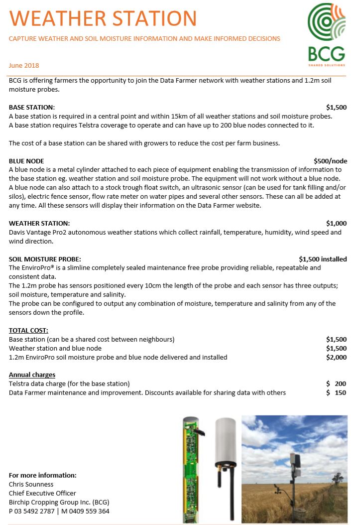 BCG is offering farmers the opportunity to purchase weather stations and 1.2m soil moisture probes and join the Data Farmer network.