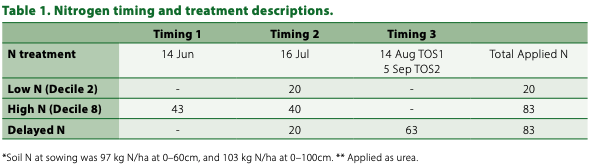 Trial managed as per best practice with varying nitrogen treatments (Table 1).