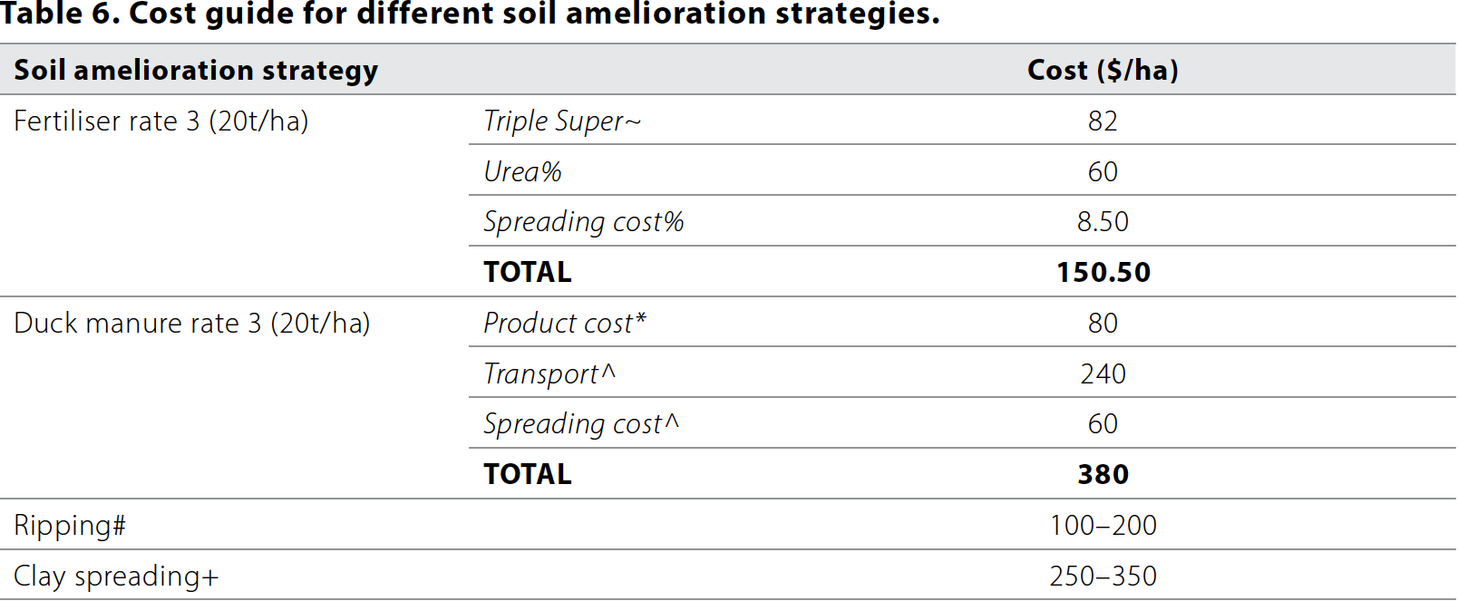 - It is important to carefully consider the costs associated with any soil amelioration strategy, as any increase in yield and associated income can quickly be eroded by product and application costs.