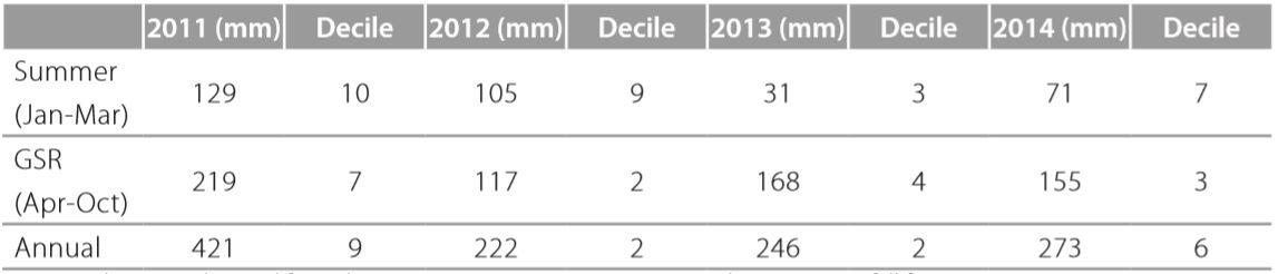 Table 2. Chinkapook rainfall and deciles for 2011-2014.
