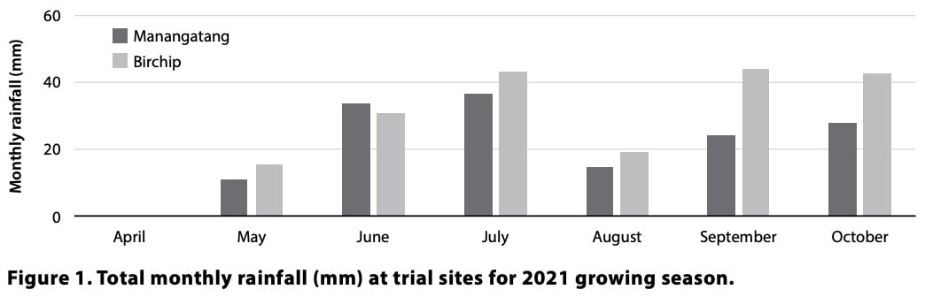 Two replicated trials were established in 2021 in randomised complete block designs. In 2022, these sites were oversown with additional treatments, resulting in two split plot trials.