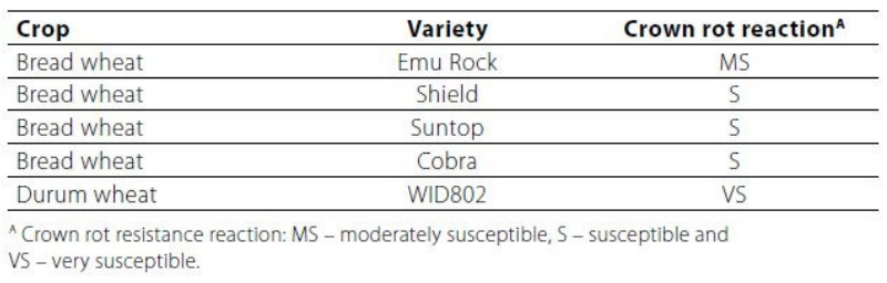 Table 1. Bread and durum wheat cultivars with associated crown rot resistance reaction.