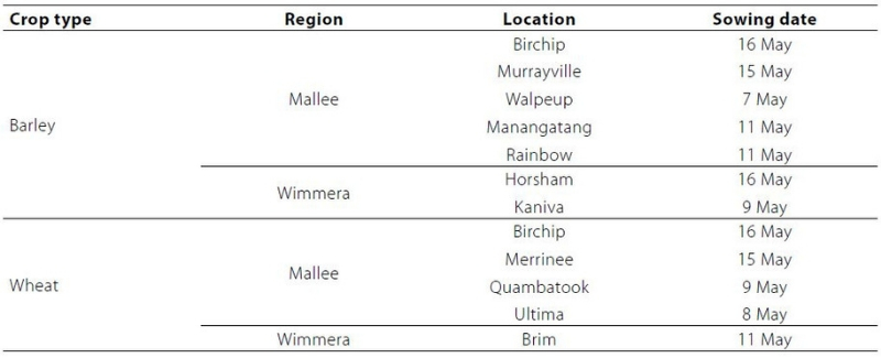 Table 1. Sowing dates for trials where data has been released by NVT before 31 December 2018.