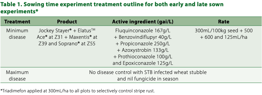 Sowing time: Avoid early sowing, especially when using susceptible varieties. STB spores are typically released from stubble early in the season, and delaying planting allows crops to avoid this initial spore release. Sowing later can limit crop exposure to multiple infection cycles, effectively reducing the overall risk of disease.