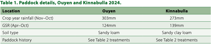 Sowing date: Ouyen – 15 May 2024, Kinnabulla – 6 May 2024