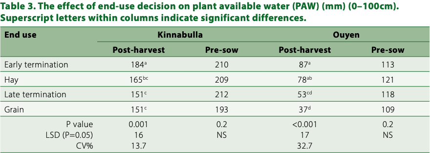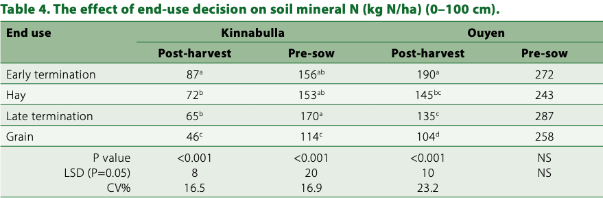 - Hay and late termination end-uses resulted in the highest grain yield in the following wheat crop.