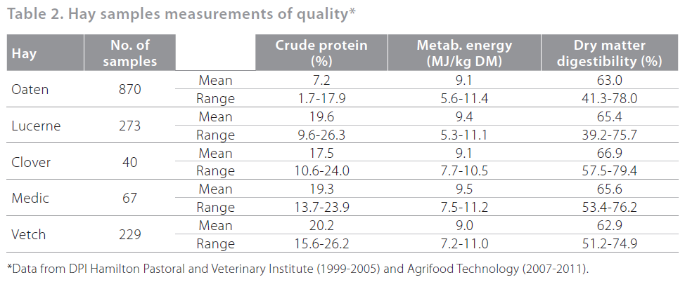 Vetch hay and silage are highly palatable for all ruminants. To achieve the best balance of tonnage and feeding value, hay and silage producers should cut common vetches at the flowering – early podding stage. Cutting vetch at this point also involves cutting many weeds before they begin setting seed, which reduces weed populations in the following crop, saves herbicide applications and decreases the risk of herbicide resistance development. Vetch hay is a very rich source of protein and metabolisable energy and is highly digestible for all ruminants (Table 2). Australian dairy farmers are increasingly adopting vetch hay as one of the main forage sources to increase milk production. Vetch hay or silage has been reported to have increased milk production per cow by more than 12% compared with meadow/grass or cereal hay (G. Zweck, dairy farmer, Blyth, SA; presented at Hart Field day 2010).