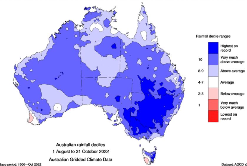 Image 2: Rainfall deciles for August to October 2022.