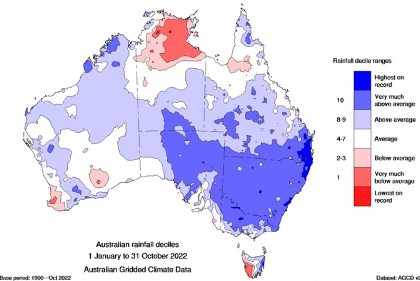 Image 3: Rainfall deciles for January to October 2022.